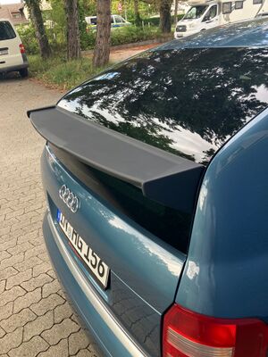 Der Audi A2 hat einen Heckspoiler, der direkt an der Heckscheibe festgeschraubt/geklebt wurde.