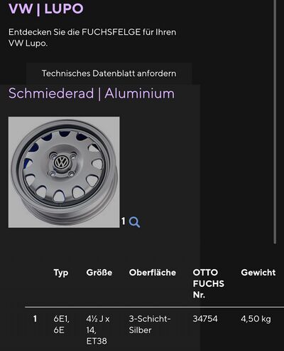 Lupo FSI Felge, 5Jx14 ET38