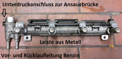 Beim AUA ist die Einspritzleiste mit Vor- und Rücklauf ausgestattet und hat seitlich eine Benzindruckdose, die mit einem kleinen Schlauch am Saugrohr angeschlossen ist. Erhöht sich die Unterdruck im Saugrohr, so erhöht sich der Kraftstoffdruck vom 2,5- auf bis zu 3.0Bar. Der Motor wird also "angefettet".