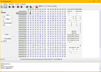 Mit VAG K Commander 1.4 und VAG EEPROM programmer V1.19 gibt es auch die Möglichkeit, das Kombiinstrument auszulesen und in einer Datei (Dump) zu speichern.