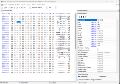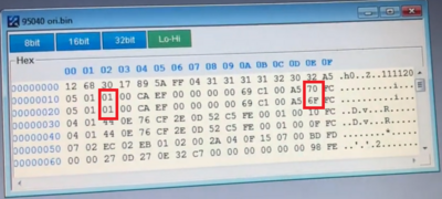 Um die Wegfahresperre zu deaktivieren, die Bits an den Adressen 0x00000012 und 0x00000022 um eins erhöhen (+1) und die Bits an den Adressen 0x0000001e und 0x0000002e um eins verringern (-1) und dann das File zurück schreiben.