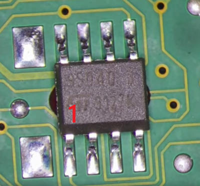 Unter der entfernten Metallabdeckung nach einem 8 poligen IC suchen. In meinem Fall ist ein 95080 von ST verbaut, siehe Bild zuvor. Ein Datenblatt ist hier zu finden.